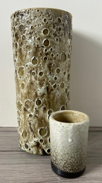 OverzichtPieter Groeneveldt kokervaasje 104-9 uitgevoerd met lichtgroen (druip)glazuur.