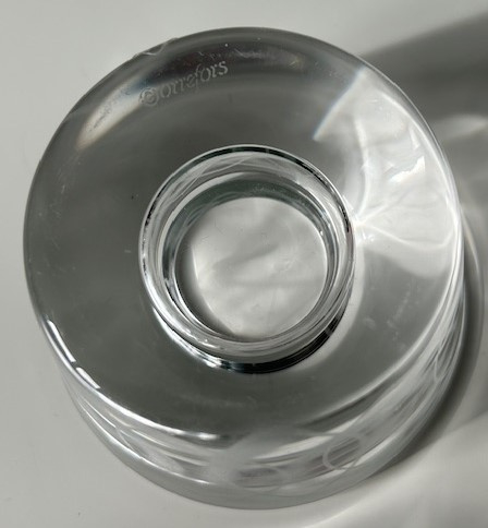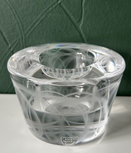 OverzichtOrrefors strak vormgegeven, dikwandige 'Slowfox' waxinehouder. De massief kristallen waxinehouder is rondom gedecoreerd met gematteerde cirkels.