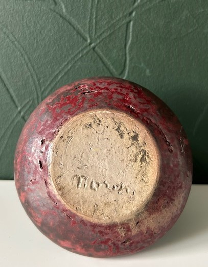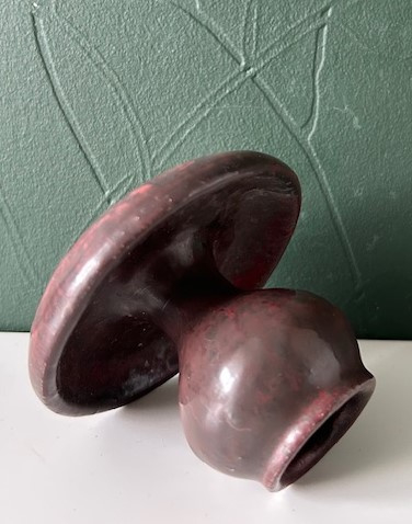 Mobach kleine kandelaar uit de periode 1965-1980 uitgevoerd met steenrood glazuur.