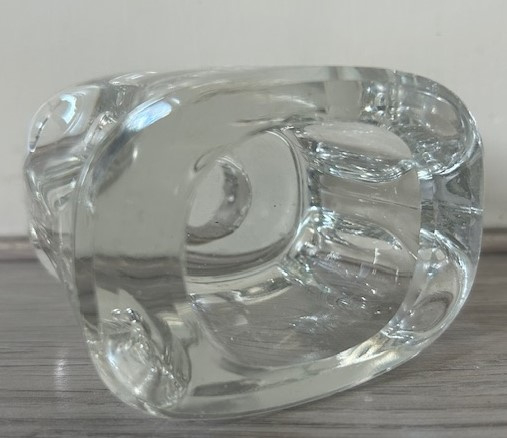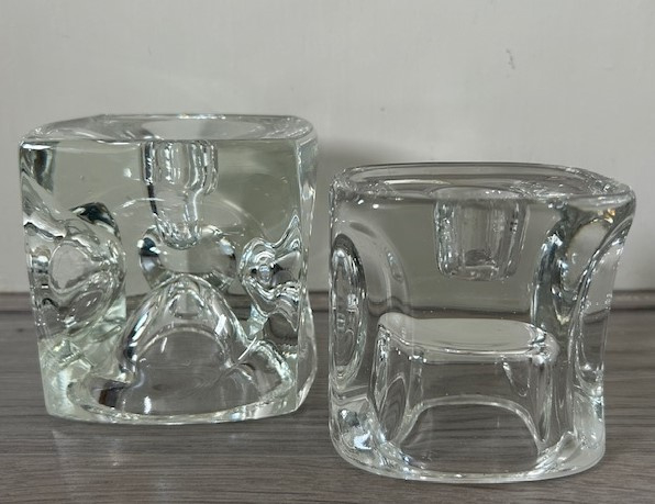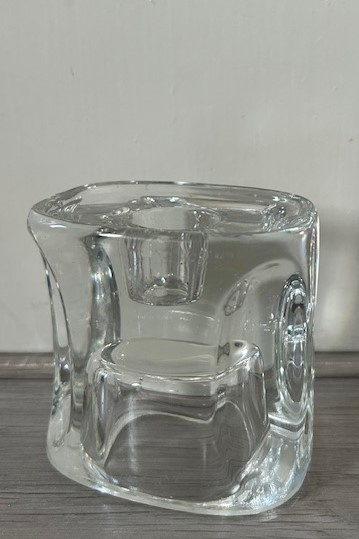 Sklo Union helder glazen 'spage age' kandelaar uit de sixties. De kandelaar is geschikt voor een tafelkaars. Omgekeerd is de de kandelaar voor waxinelichtjes te gebruiken.