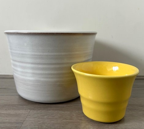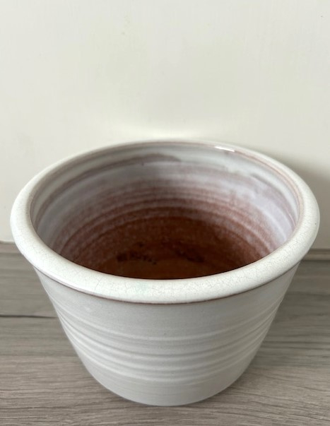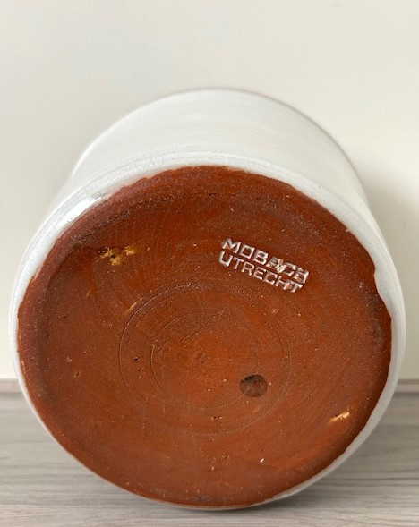 OverzichtMobach rechte bloempot uitgevoerd met mat wit glazuur. Tijdloze handgedraaide pot uit de jaren vijftig.