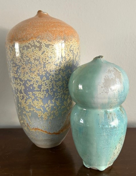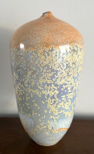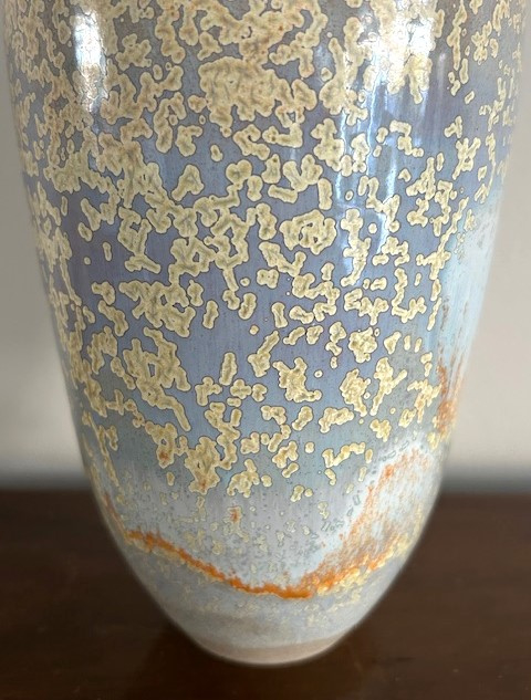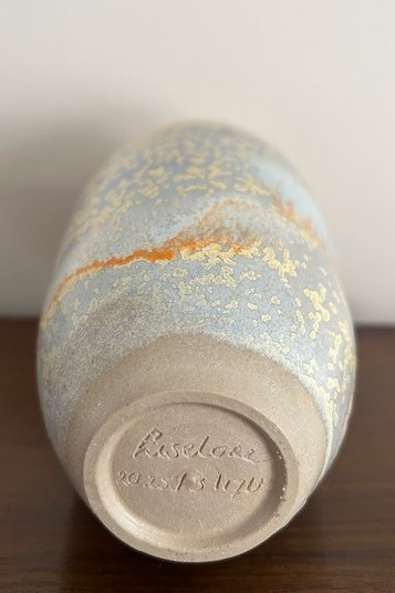 OverzichtForse handgedraaide vaas 'Sunset River' van keramiste Liselore Halink. De warme kleuren van het micro-kristalglazuur zijn geinspireerd op de zonsondergang bij het Spaarne. Liselore heeft in 2011 de keramiekopleiding (Gouda) afgerond. Vanaf 1996 volgde ze de Dutch Design Academy en de Hoge Hotelschool, waarbij ze stages liep in China en Thailand. Hier is haar passie voor Aziatische keramiek en estethiek ontstaan.