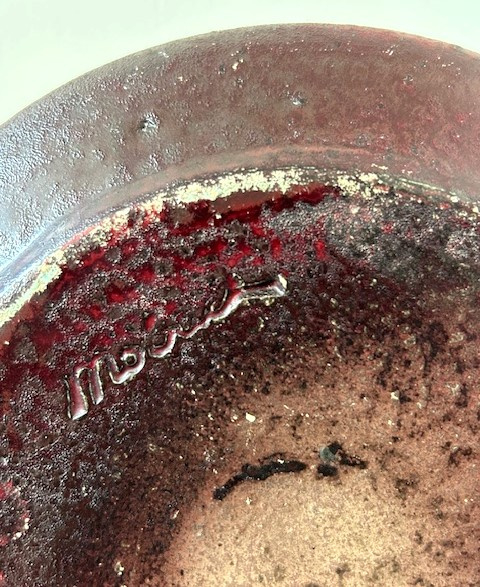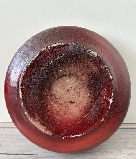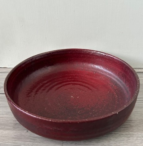 OverzichtMobach handgedraaide schaal met opstaande rand. De rustieke schaal is bedekt met roodbruin glazuur.