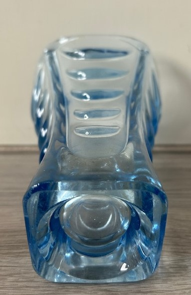 OverzichtHermanova Hut (vanaf 1965 Sklo Union) lichtblauwe 'Drapery' reliëfvaas. Het ontwerp van Vaclav Hanus stamt uit 1957.