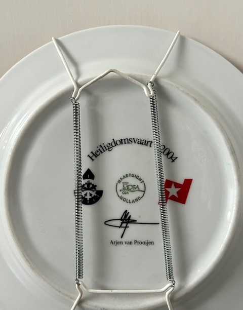 OverzichtMosa porseleinen bord 'Heiligdomsvaart 2004'. Ook op dit wandbord staat de Sint-Servaasbrug centraal. Deze grafische borden met hun warme tinten zijn zeer decoratief. Het bord wordt geleverd compleet met metalen bordenhanger.