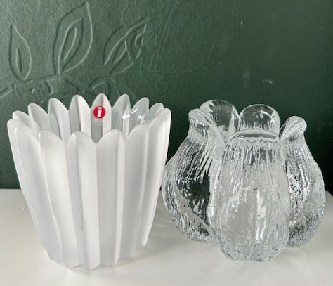 OverzichtKosta Boda 'Rosebud' (rozenknop) waxinehouder van kristalglas. Een ontwerp van de Zweedse glaskunstenaar Mats Jonasson.