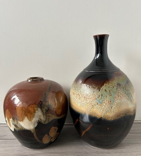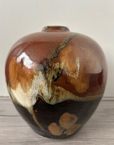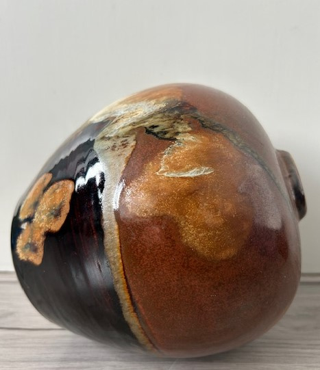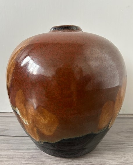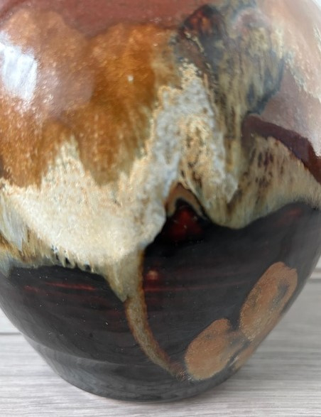 OverzichtLeo Martens forse handgedraaide vaas uitgevoerd met o.a. tenmoku glazuur. De vaas in 'Oosterse stijl' is voorzien van een smalle opening. Sinds zijn nieuwe atelier in Valthermond (2011) is fotografie naast keramiek een belangrijke rol gaan spelen.