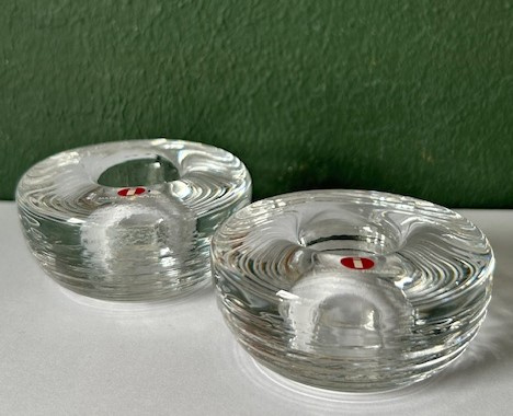 Iittala set Maaru kandelaars smallIittala set 'Maaru' kandelaars (kleine uitvoering ca. 6x2,5 cm) van helder kristalglas. De ronde kandelaartjes zijn van onder naar boven gedecoreerd met ingeperste cirkels.