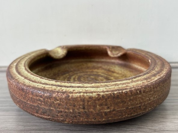 Mobach asbak bruinMobach grote asbak uit de jaren zeventig geglazuurd in groen en bruin.