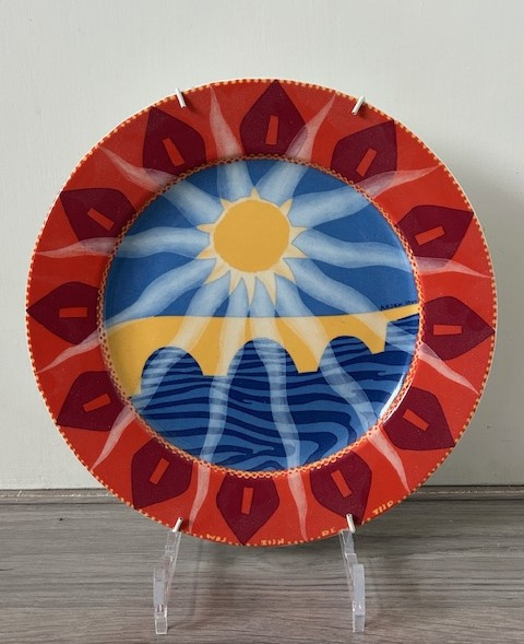 Mosa wandbord Maastricht HeiligdomsvaartMosa porseleinen bord 'Heiligdomsvaart 2004'. Ook op dit wandbord staat de Sint-Servaasbrug centraal. Deze grafische borden met hun warme tinten zijn zeer decoratief. Het bord wordt geleverd compleet met metalen…